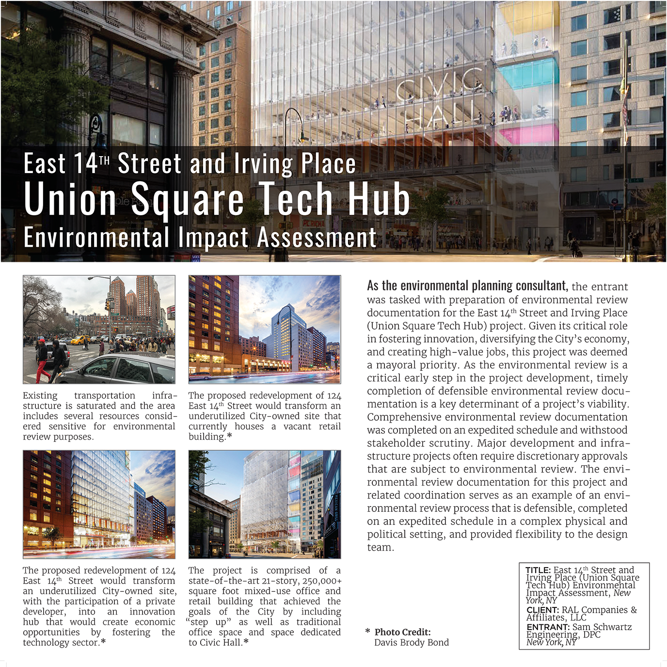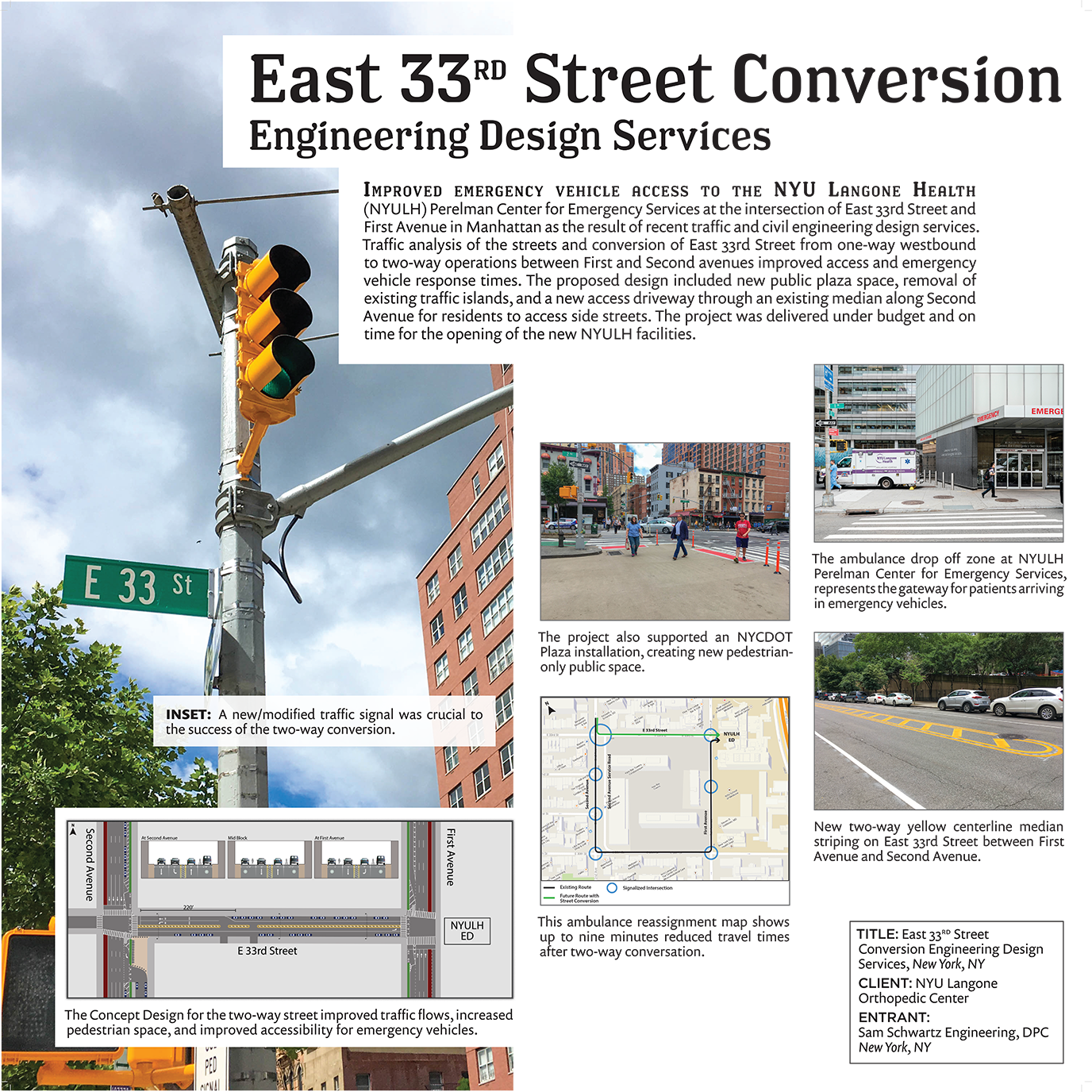 Large-scale poster boards used as part of award submissions to NYC-based engineering associations